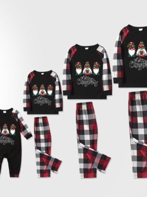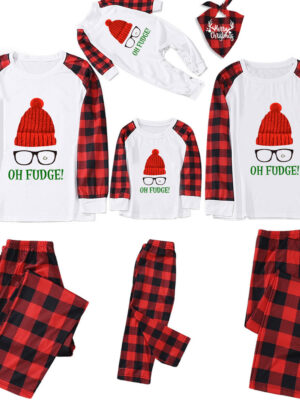 Green and Red and White Plaid Long Sleeve Christmas Family Matching Pajamas Set