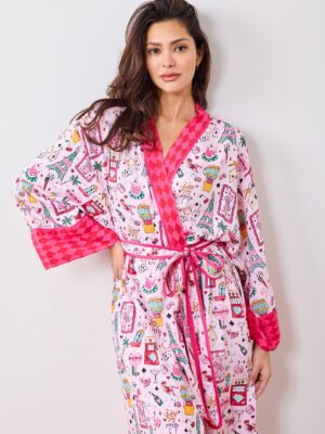 Viva Las Vegas – Eco Satin Robe – Lucky Pink