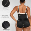 • Built-in steel bones at the back waist prevent rolling and offer support.