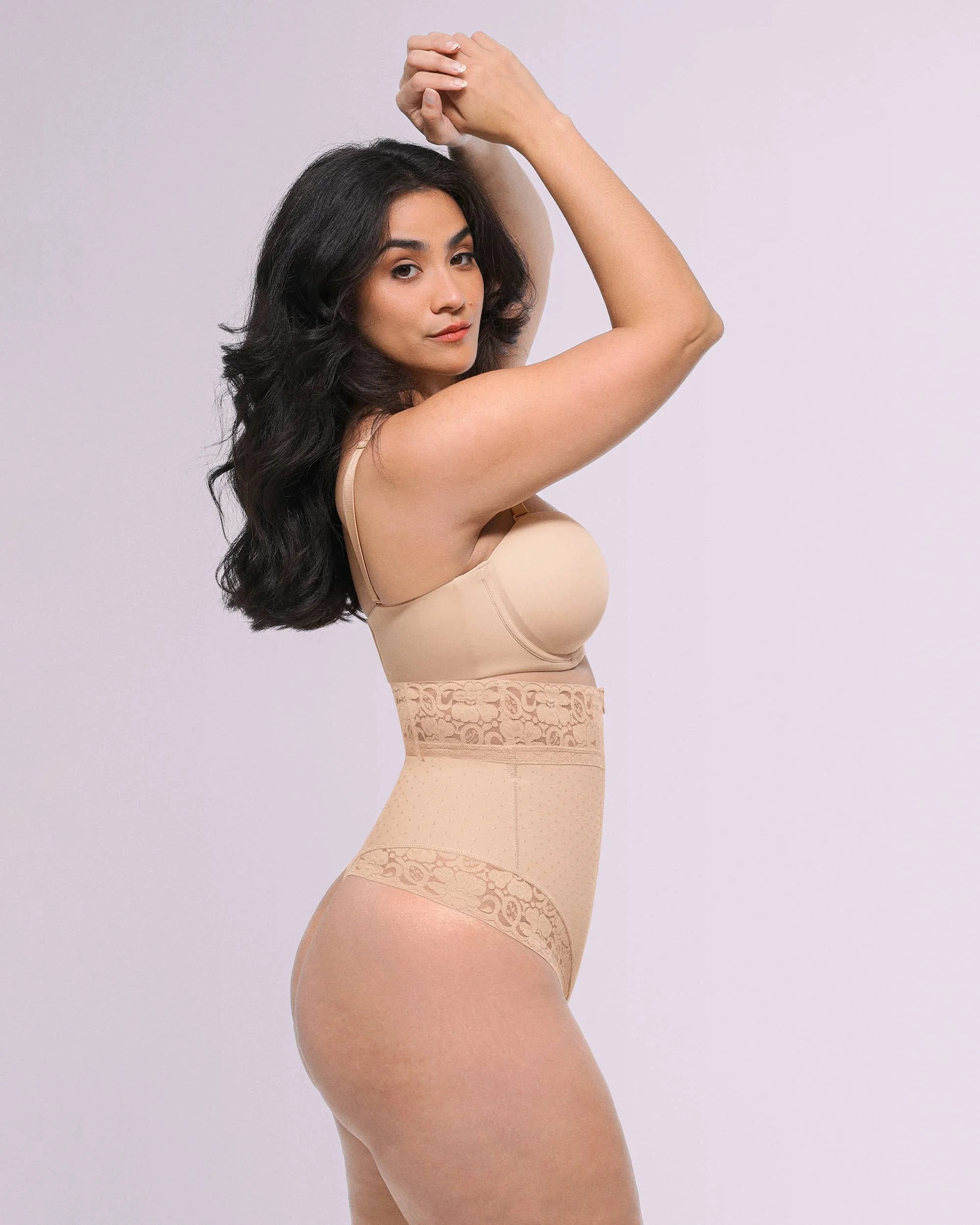 • Upgraded 3.15-inch lace waistband for a streamlined effect.