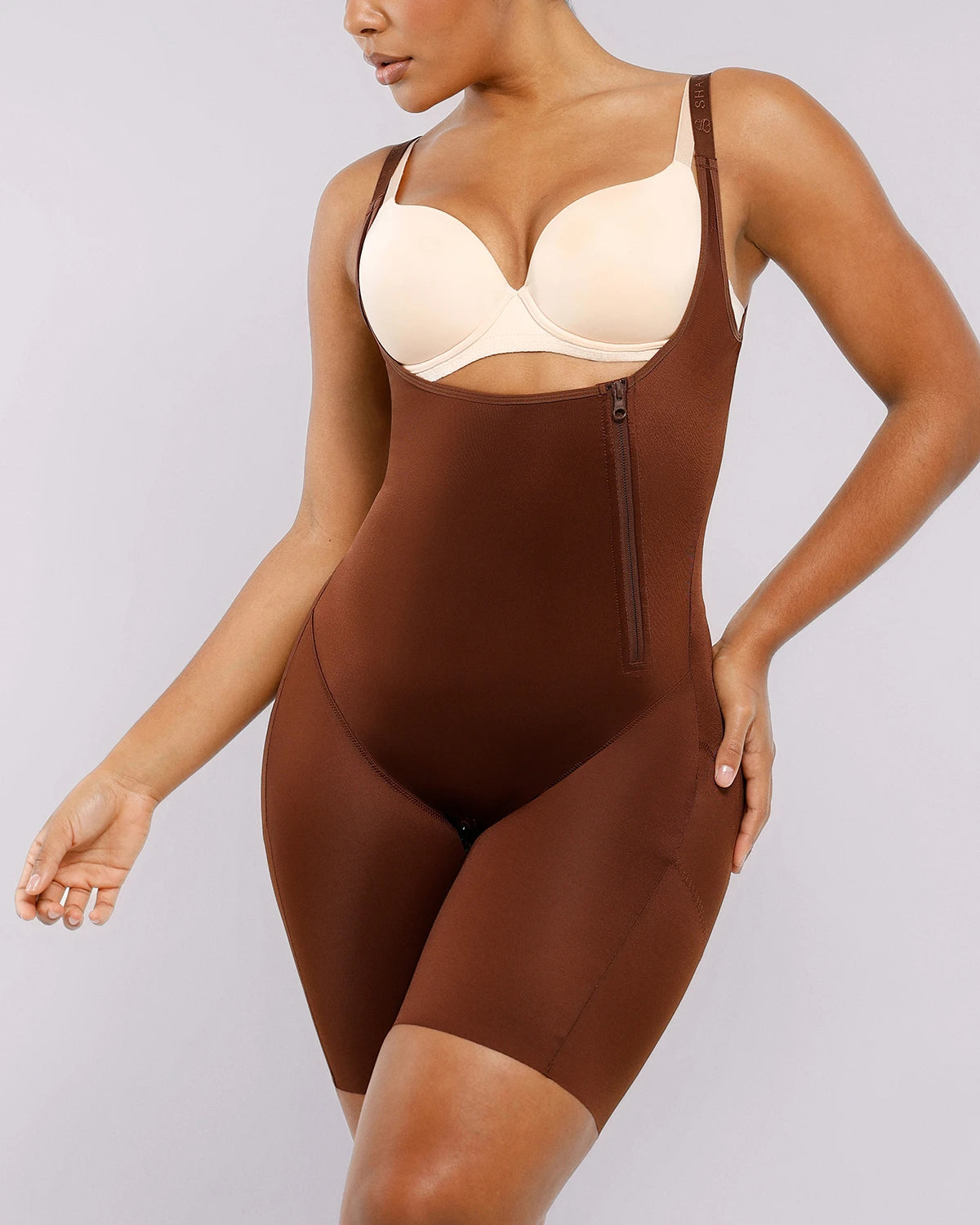 Transform your silhouette with the BOOT-YEAH™ SilkSculpt™ Open Bust Full Bodysuit! Made with firm compression fabric, it sculpts your torso and thighs for a stunning look. Triple-layered support in the abdomen enhances your shape seamlessly. The convenient hook-and-zip closure simplifies dressing. Embrace your curves today with elevated everyday style!