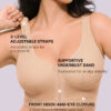 Our Bare Essentials™ AirSlim® Unlined Wireless Back Support Bra is designed for comfort and posture support. This wire-free bra features double-layer cups for a natural shape and criss-cross back bands to improve your posture. The adjustable front closure and wide straps provide a customized fit, while the elastic underbust band offers all-day support. Ideal for daily wear and various occasions.