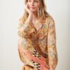 - Top fits slightly boxy, hits at the natural waist. Sleeves are loose and comfy.
