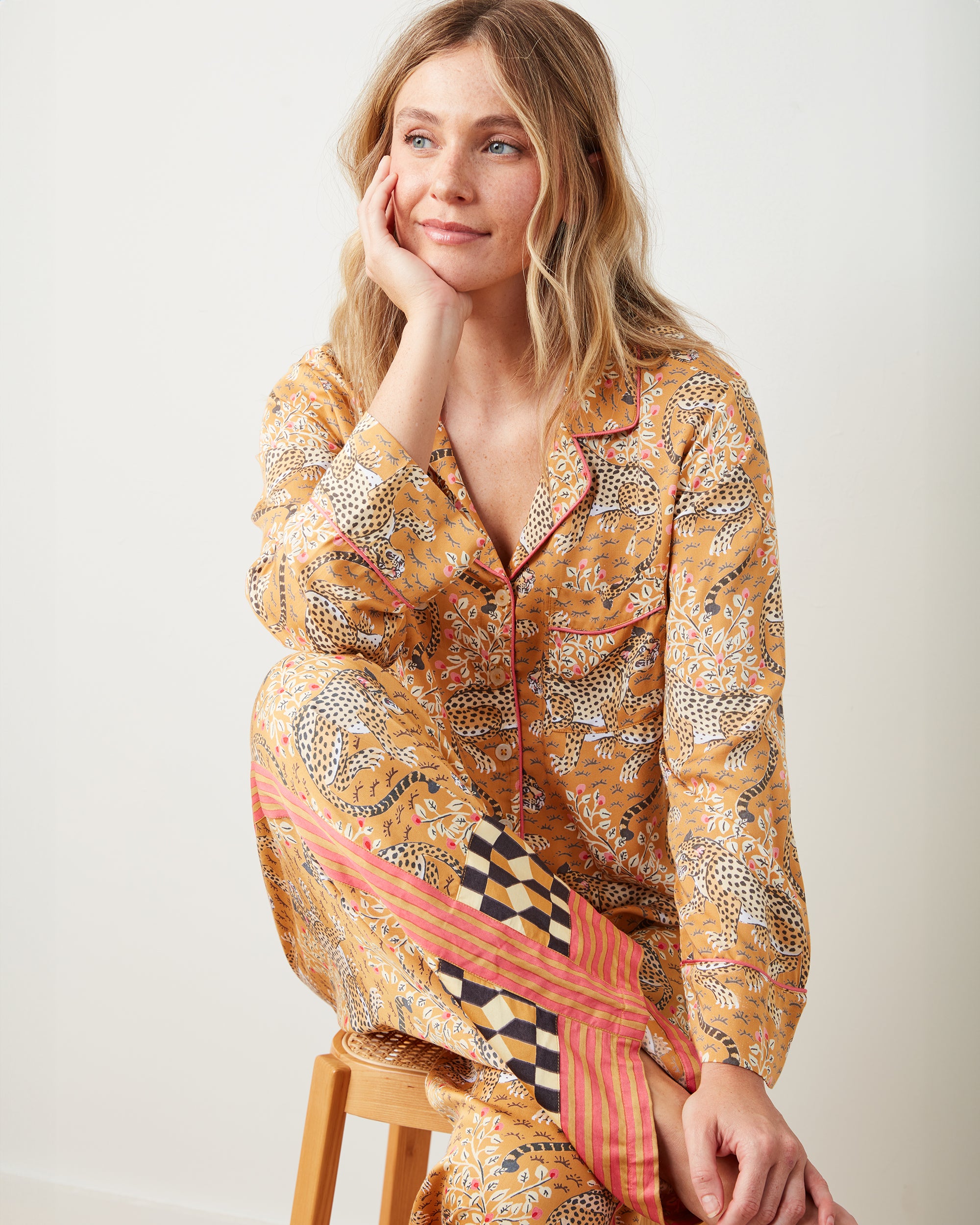 - Wide-leg pants are a higher rise than our traditional cotton poplin pajama sets.