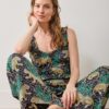 Bagheera is back and iconic for summer. This leopard print pajama set in ink features our iconic jungle cat, now in a satin ruffle tank and pant set made for lounging. These satin leopard pjs are equal parts playful and polished—the ultimate women’s pajama set for warm nights. Find more in our , , and collections.