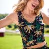 - Fit: Ruffle-trimmed, slightly cropped tank with built-in elastic for a comfortable stretchy fit. Wide-leg pants with oversized, roomy silhouette and higher rise featuring pull-on waistband and pockets. 25.5″ inseam.
