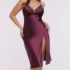 Bare Essentials™ Satin Lace Pajama Dress – Designed to highlight your curves with a flattering V-neck, delicate lace accents, and built-in bust support. The elegant high slit and silky satin drape beautifully, making you feel effortlessly sensual and comfortable all night long.