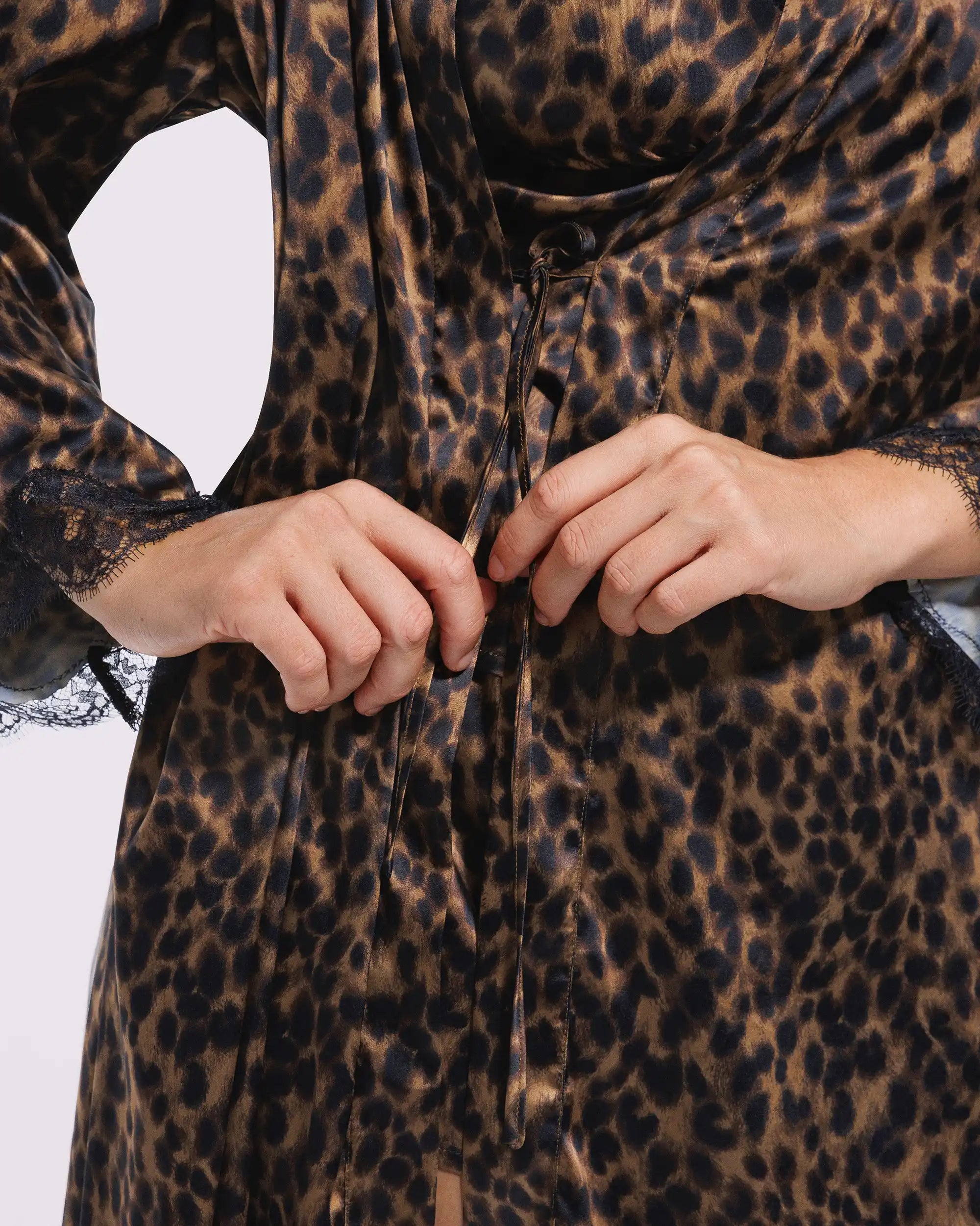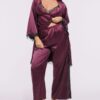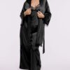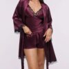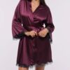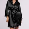 Indulge in effortless elegance with our Bare Essentials™ Satin Lace Pajama Robe. The silky fabric glides over skin with a flattering V-neck and romantic lace details. Features an adjustable self-tie belt, perfect for layering over sleepwear.