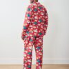- Sizing: Men’s PJ set with roomy button-down long-sleeve top. Mid-rise pants feature a relaxed fit, an elastic waistband, and adjustable drawstring. 28″ inseam. Pants have pockets.