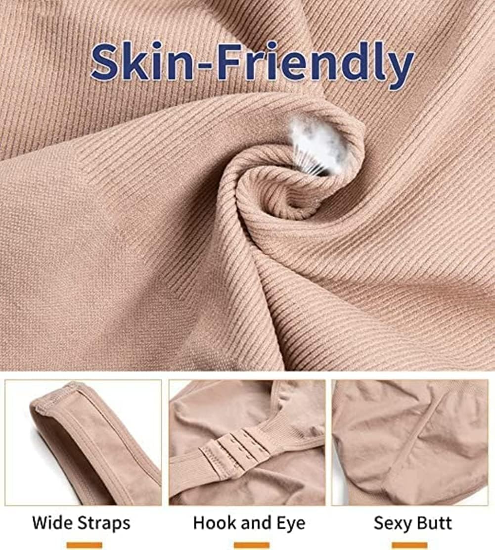 - HEALTHY DESIGN: This bodysuit shapewear is non-padded wire-free so you can wear your favorite bra. The adjustable elastic shoulder straps let you adjust the shaping bodysuit for women for a perfect fit. The crotch part is made of breathable cotton material and the 3-row hook & eye closure makes bathroom use easy and convenient.