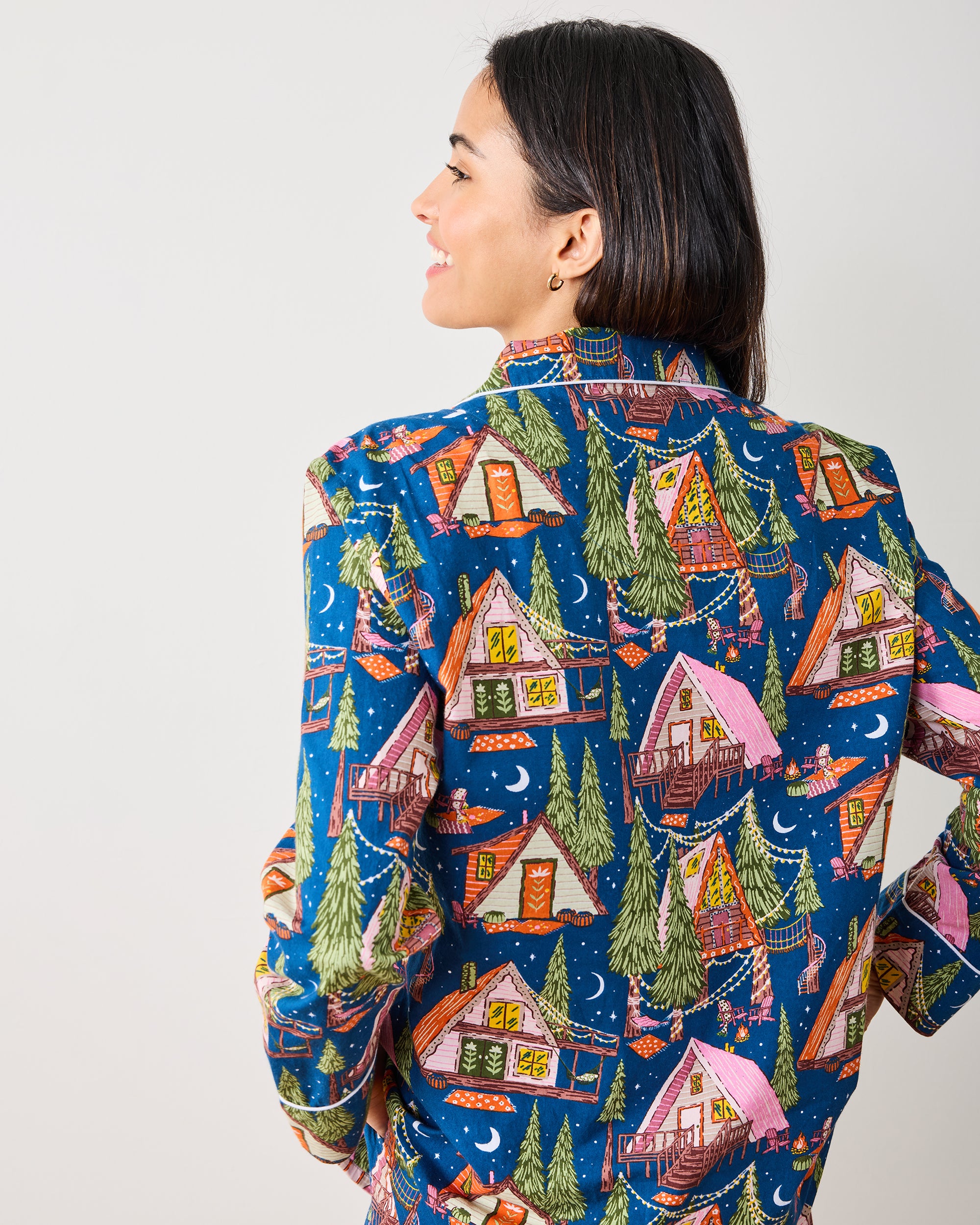 Our campfire print pajama set in starlight blue captures the magic of nostalgic nights with cozy cabins, glowing fires, and forest skies. Made from breathable 100% organic cotton, this women’s cotton sleepwear set is the go-to for cool evenings—fireside or couch-side. Includes pockets for all your essentials. Explore , , and .