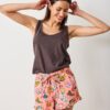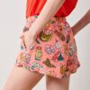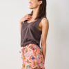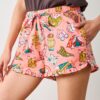 Happy campers only. These camping print sleep shorts in coral are made from breathable organic cotton with playful ruffle hems and a comfy fit. Featuring tents, campfires, and wilderness nostalgia. With pockets for your essentials, they’re the cotton pajama shorts you’ll wear on repeat. Explore more and for every warm-weather wind-down.
