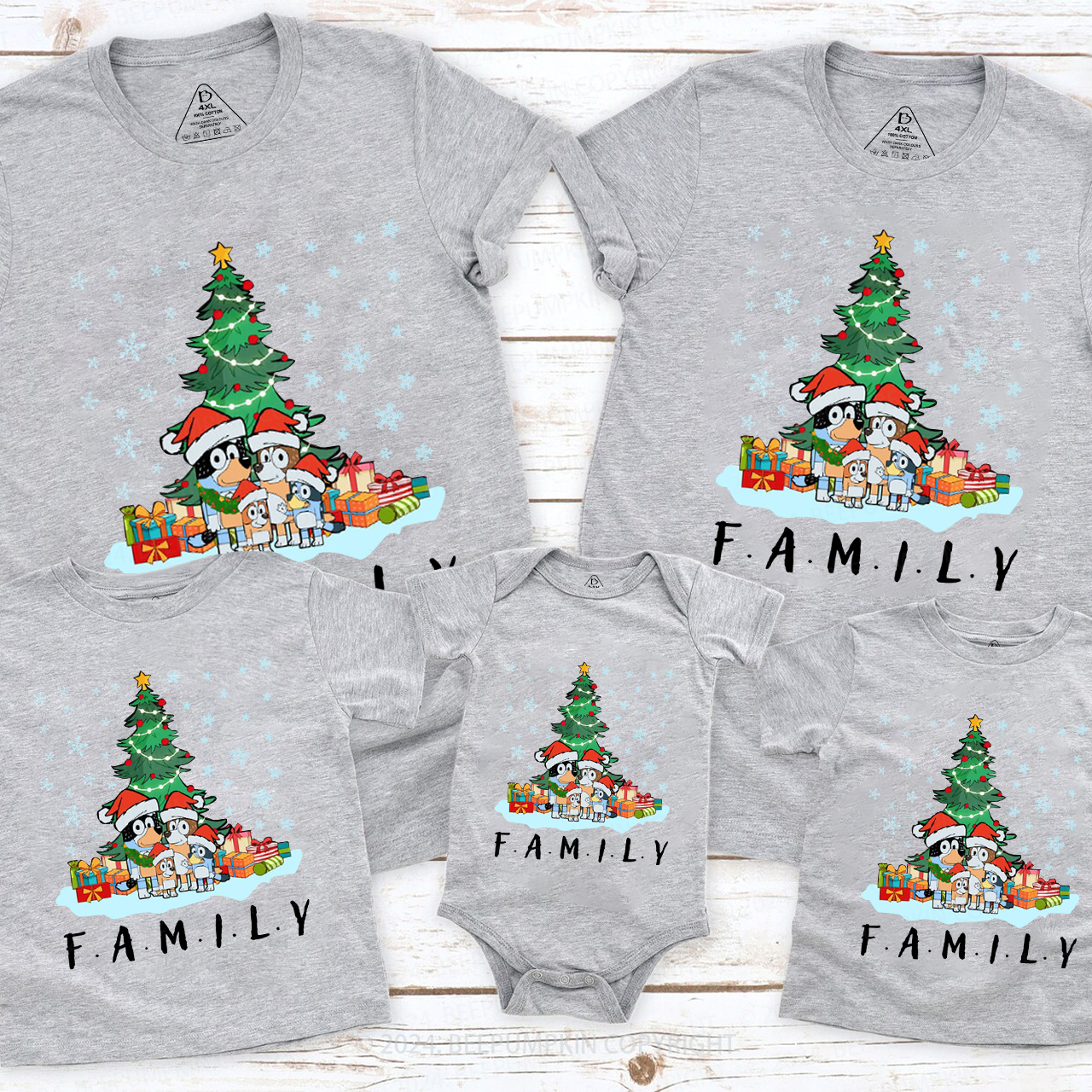 Cartoon Dog Christmas Family Matching T-Shirts Beepumpkin