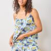 - Cami fits relaxed, slightly cropped and hits at low waist.