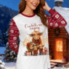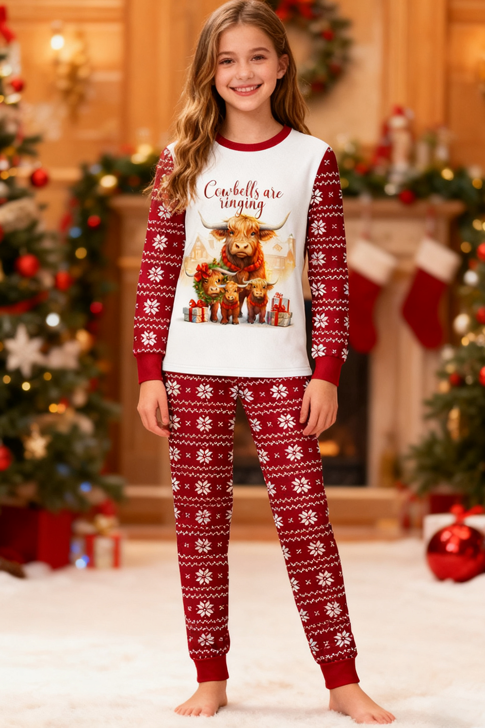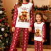 A mother and daughter, glowing with joy in matching festive pajamas, share a tender moment before their beautifully adorned Christmas tree, surrounded by the warmth of holiday decorations. No one can resist the warmth and joy of Christmas and the New Year. Let the whole family wear these special Christmas-themed pajamas together!