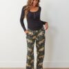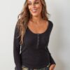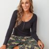 - Sizing: Shrunken style that fits snugly to the body. Body length skims the top of our signature pajama pants. Scoop neck and wide cuff detail.