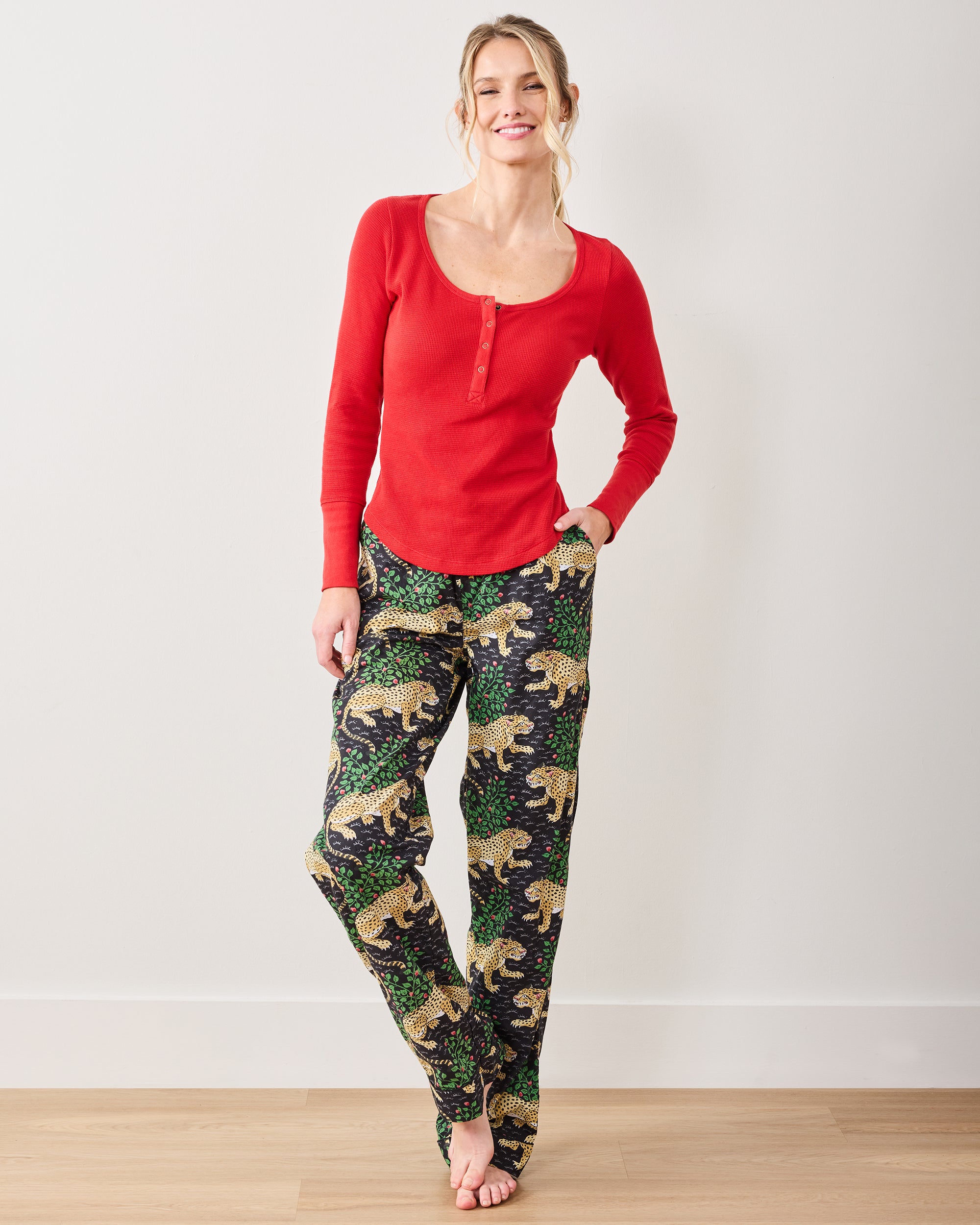 Crafted from a soft waffle knit, this long-sleeve henley top is the perfect match for our pajama pants. With a classic snap closure and a snug fit, this pajama top is a cozy essential.