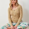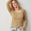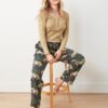 - Sizing: Shrunken style that fits snugly to the body. Body length skims the top of our signature pajama pants. Scoop neck and wide cuff detail.