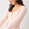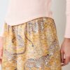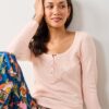 - Sizing: Shrunken style that fits snugly to the body. Body length skims the top of our signature pajama pants. Scoop neck and wide cuff detail.