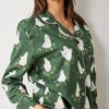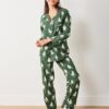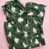 - Fit: Button-down top with relaxed fit that’s roomy and chic. Mid-rise pants with elastic waistband, adjustable drawstring, and 28″ inseam.