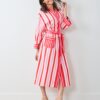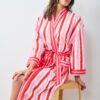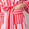 Wrap yourself in holiday sweetness with our Gift Wrapping lounge robe in Peppermint Swirl. This holiday striped robe features classic stripes with a festive twist, crafted from breathable organic cotton. The versatile unisex design includes an adjustable belt and pockets for your essentials. Perfect cotton robe for cozy holiday layering. Discover more in our and .