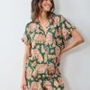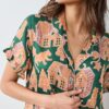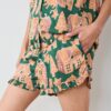 Take a delightful bite out of the holidays with our Gingerbread Party short pajama set in Hunter Green. This festive sleepwear outfit features a whimsical gingerbread print on silky Eco Satin with playful ruffle details and convenient pockets. It’s a holiday satin short set for sweet dreams all season long. Discover more hand-painted prints in our , , and our .