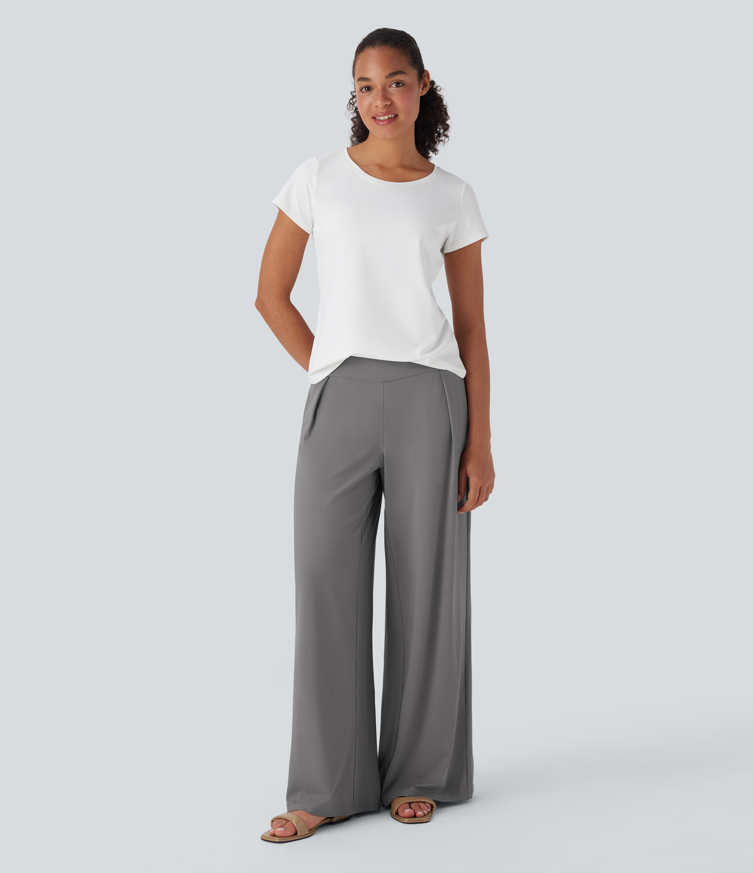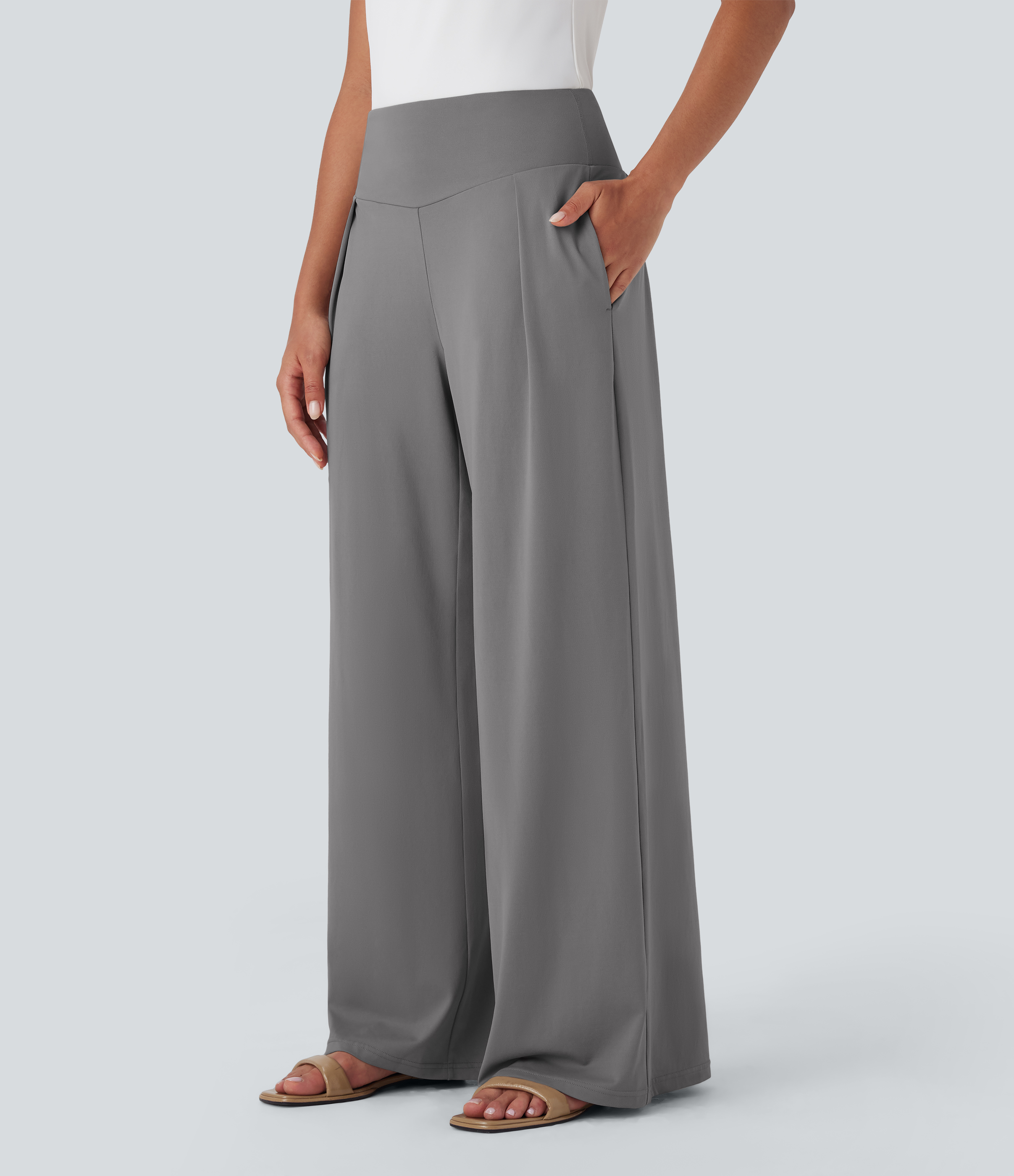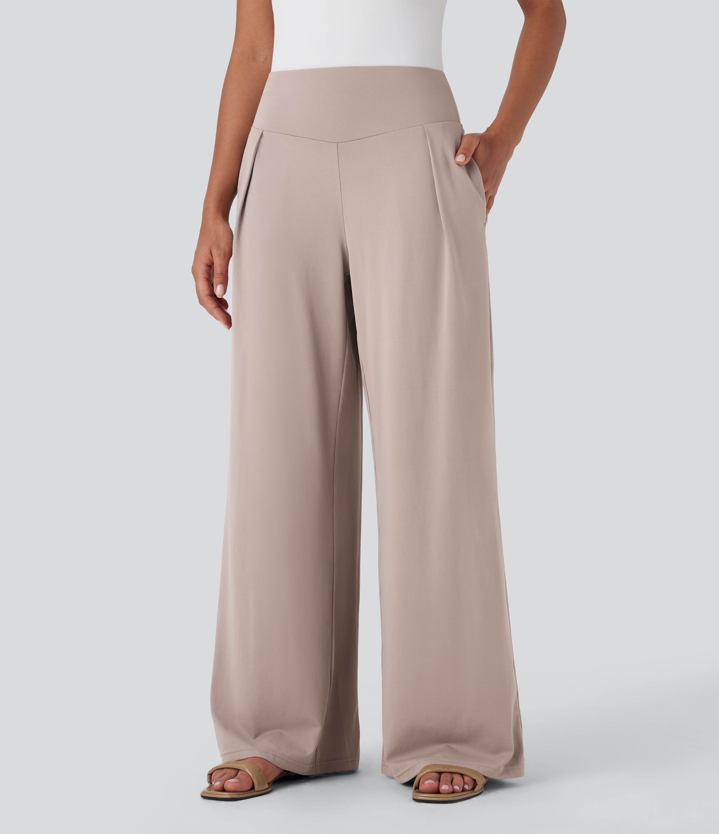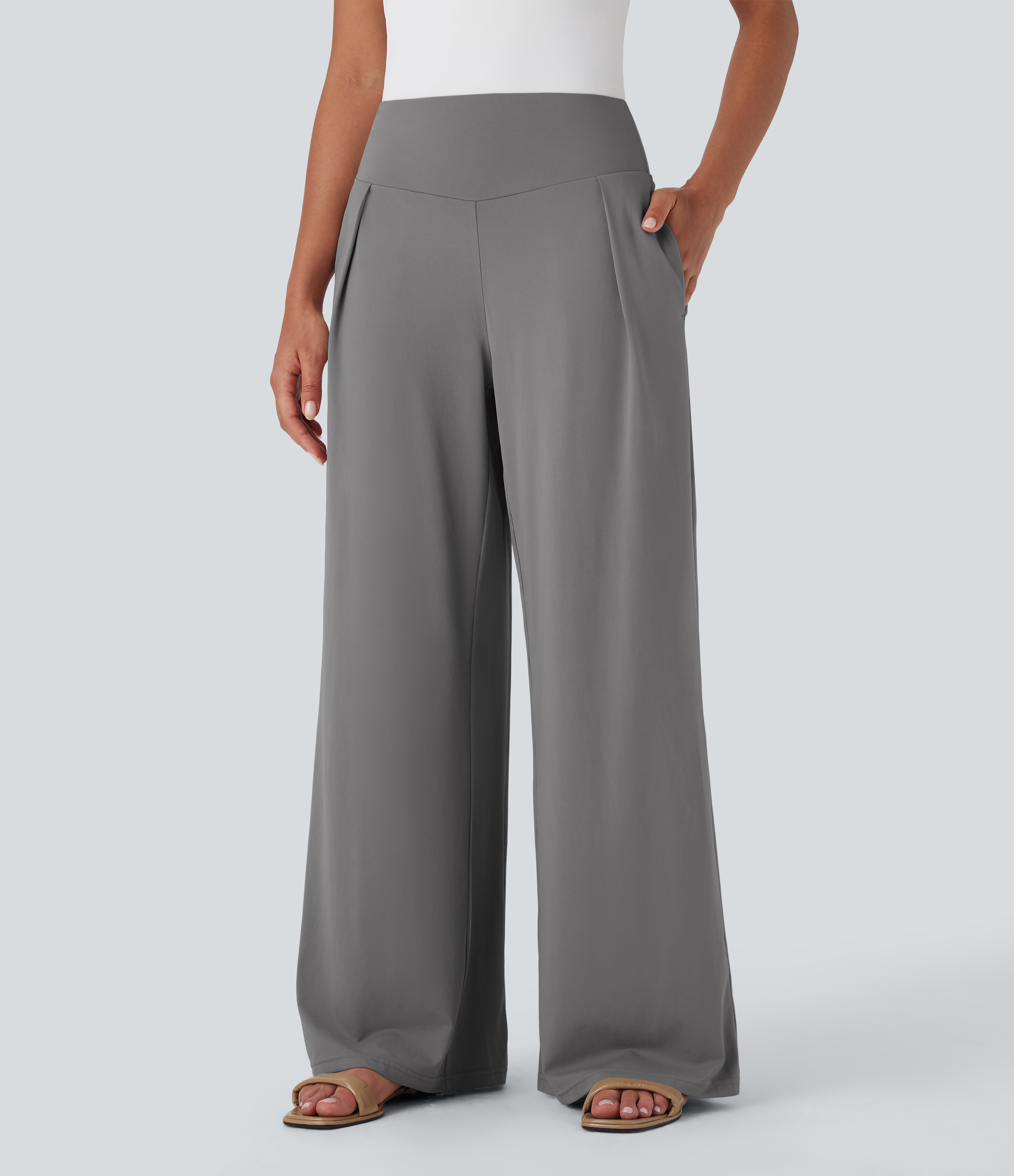 - Wide leg style gives a timeless look, while providing comfortable wear.