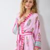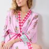 Make the holidays purr-fect with our Leopard Nutcrackers satin lounge robe in Pink Candy Cane. This festive satin sleepwear robe features whimsical leopards paired with holiday nutcrackers on silky Eco Satin. Our long satin robe creates a custom silhouette with contrasting belt details and deep pockets. A luxurious holiday satin robe for wrapping gifts by the fireplace. Discover more , , and in joyful prints.