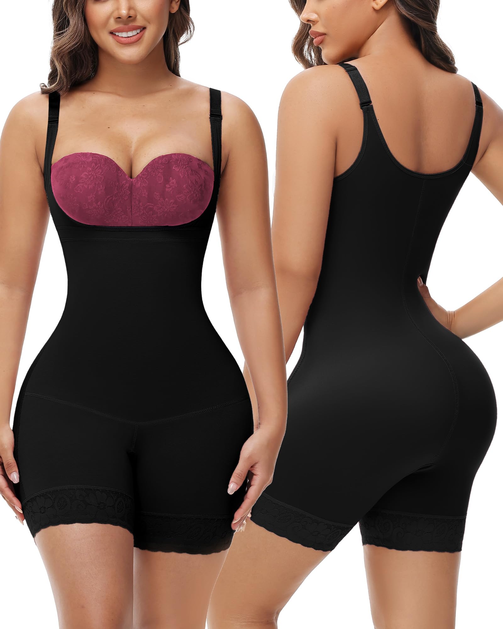 U-Shaped Design & Adjustable Straps: Open bust shapewear design help push up and support chest,giving a beautifully rounded shape.The tummy control shapewear adopts an adjustable non slip shoulder strap design, which can freely adjust the length of the shoulder strap according to the body shape, allow you to customize the fit, making wearing more comfortable.