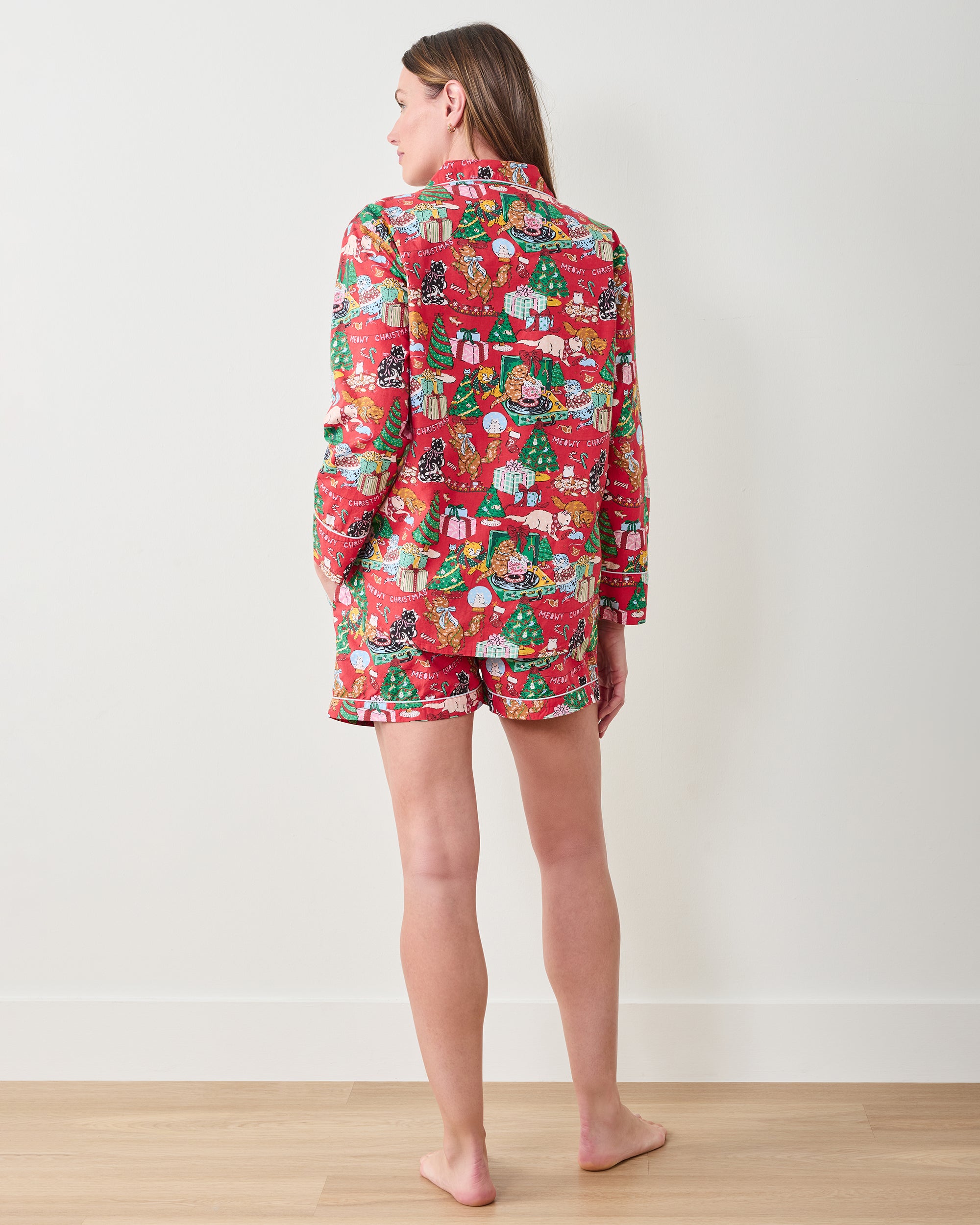 Meowy Christmas – Long Sleeve Top & Shorts Set – Red Bow