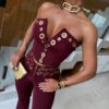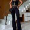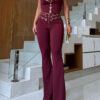 Metal Eyelet Flared Trousers and Top Two-Piece Set