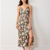 - Fit: Designed to graze the body without being too form-fitting. Features adjustable straps and smocked back detailing for a customized fit. Midi length measures 45.5″ long from the v-neck to the bottom, with a 17″ side slit for easy movement. No pockets.