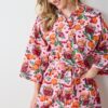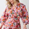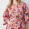 Steep yourself in holiday magic with our Mulled Wine cotton robe in Pink Tinsel. Glass mugs, cranberries, and spices dance across breathable organic cotton in this festive hand-drawn print. Our holiday robe features an elegant floor-grazing length, deep pockets, and a matching belt for a custom silhouette. Perfect cotton sleepwear layer for holiday breakfast prep. Explore our and for more seasonal delights.