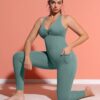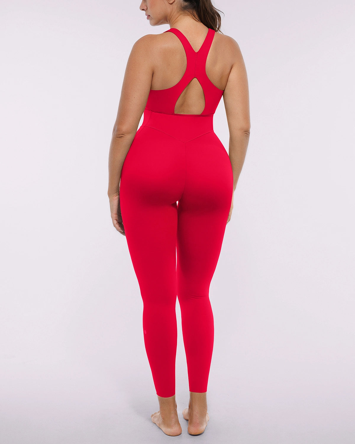 NeoSweat® AirSlim® Racerback Jumpsuit – a sleek, sculpting one-piece that flatters and performs. The stylish V-neck and racerback highlight your curves, while hidden pockets and removable cups add practical versatility. With adjustable hems and seamless comfort, it’s perfect for workouts or weekend wear.