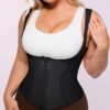 • U-shaped vest with high back lifts the bust and smooths underarm and back bulges.