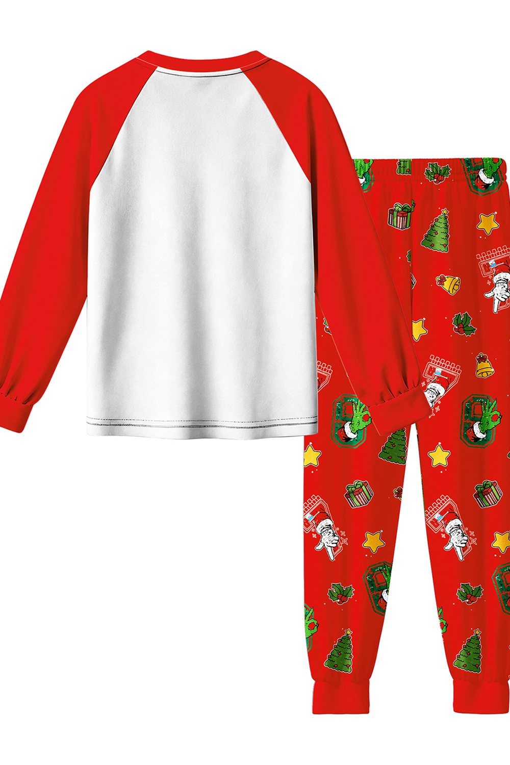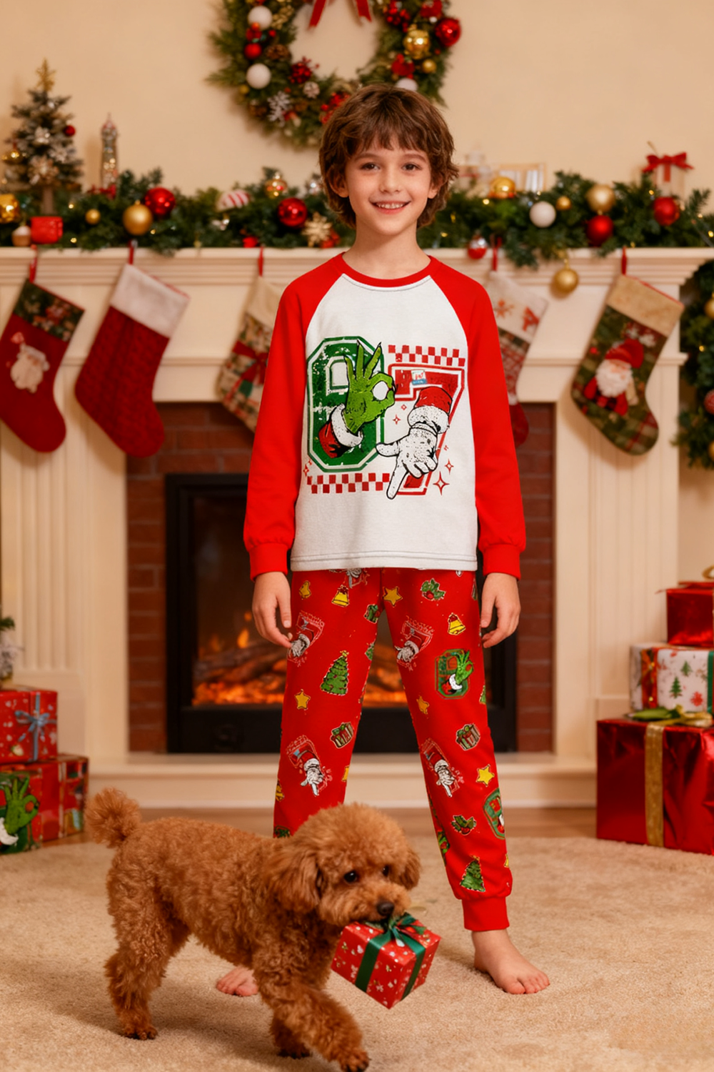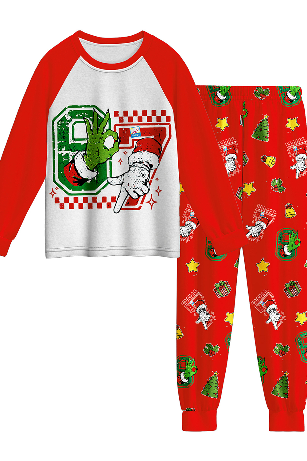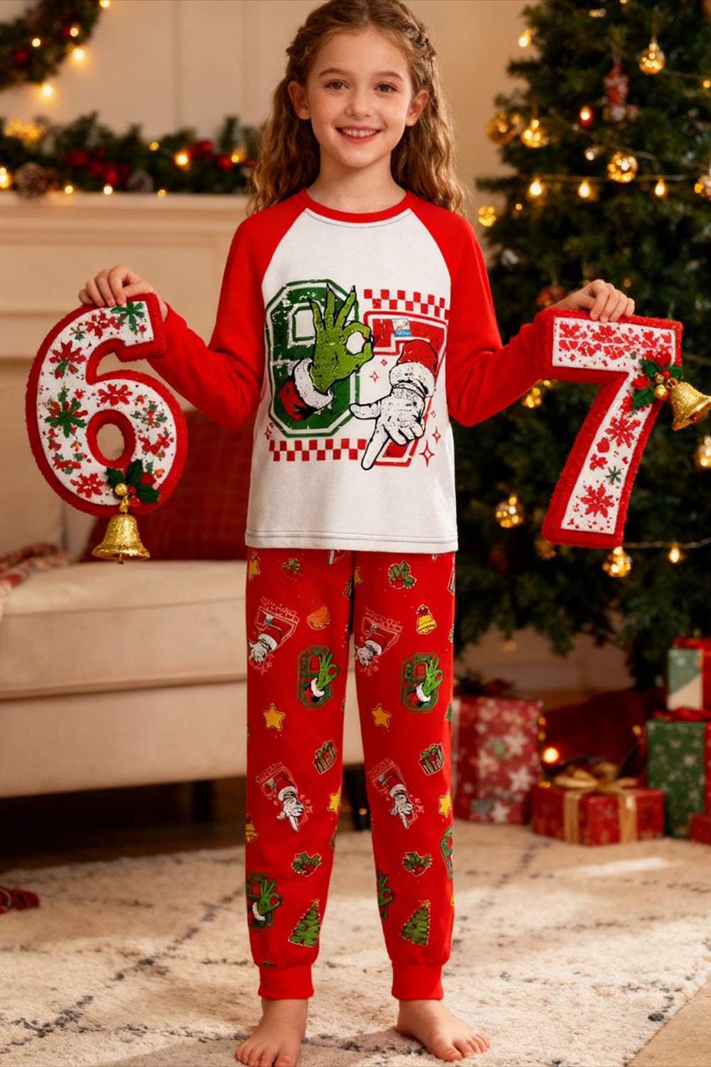 SIX SEVEN Prints with Green Monster Hand and Santa Christmas Kids’ Pajamas Set