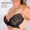 This unlined bra provides full coverage and underwire support for a smooth, comfortable fit. The elegant lace detail adds a touch of femininity. Crafted with soft, lightweight fabric, it delivers weekend-level comfort while maintaining a supportive everyday shape.