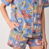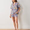 Playful pups lounge among beloved books in this short pajama set. Crafted from breathable organic cotton in a charming Bookkeeper Blue, this dog print pajama set features a relaxed silhouette with a button-down top, comfortable shorts, and pockets. Perfect blue cotton PJs for bedtime stories and quiet mornings with a good read. Explore more charming hand-illustrated prints in our pajama sets and short sleep sets.