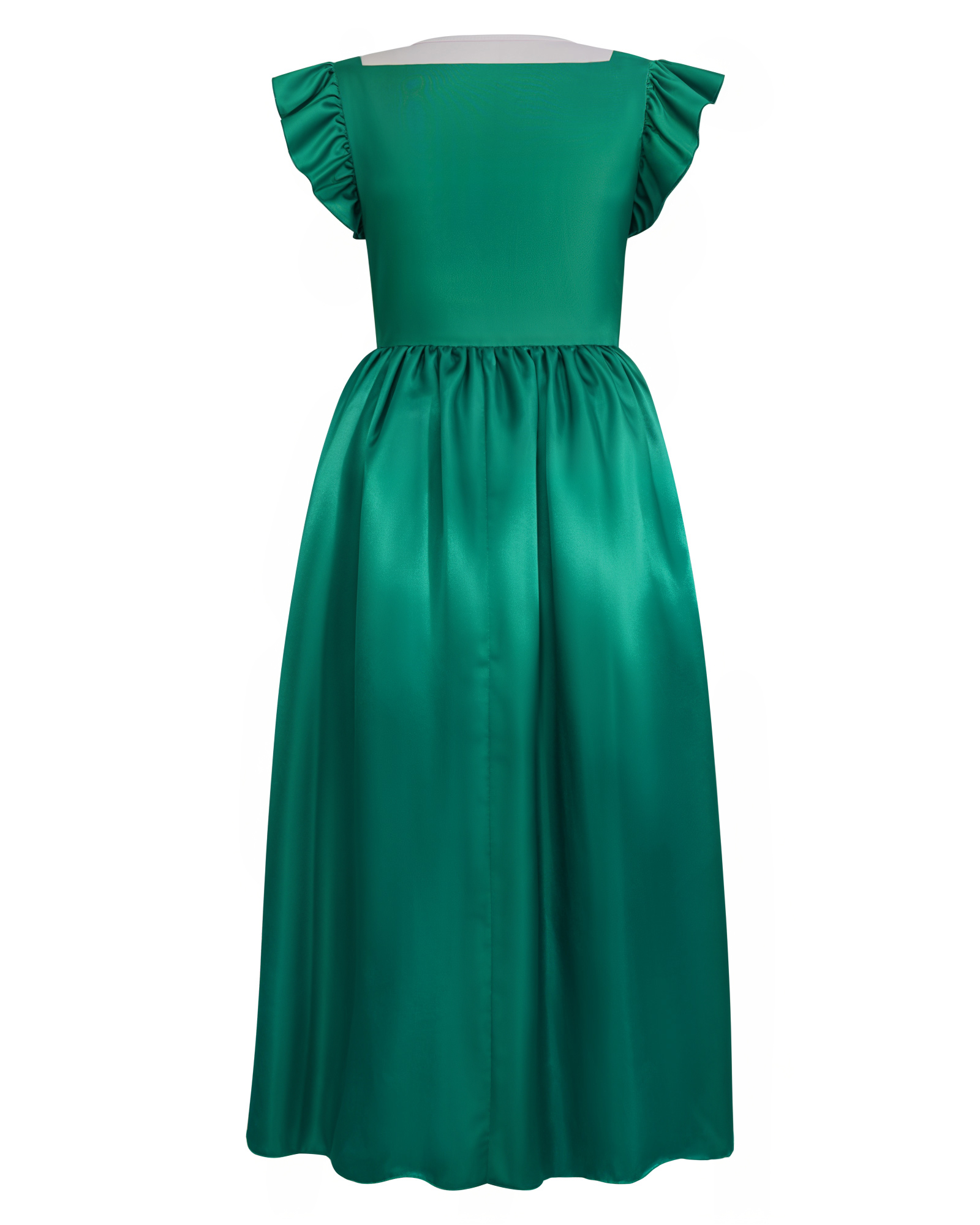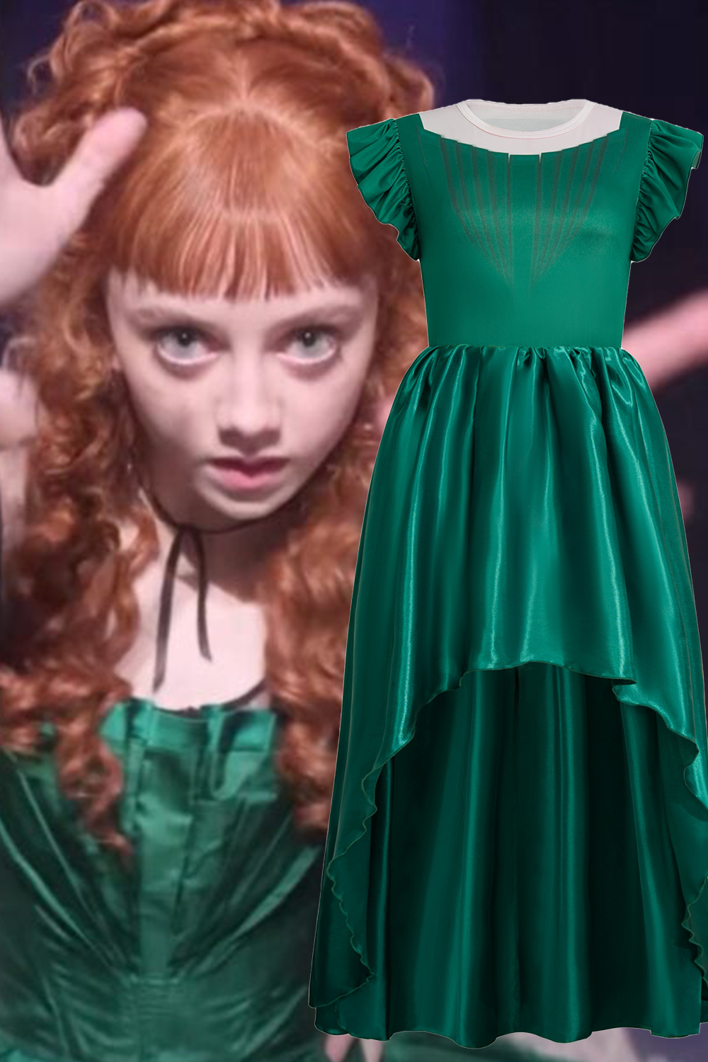 Wednesday’s style encompasses minimal tones, mainly Green in various shades, fabrics and silhouettes. Towards the end of the season we see Wednesday adorned in a maxi Green ruffled dress to prom. If you’re not a fan of all Green clothes, now is the time to divulge into it and explore a different look and if you are, you’re welcome.