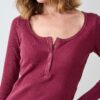 - Sizing: Shrunken style that fits snugly to the body. Body length skims the top of our signature pajama pants. Scoop neck and wide cuff detail.