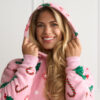 OHS Adults Christmas Candy Cane Fleece Hoodie Pyjama Set