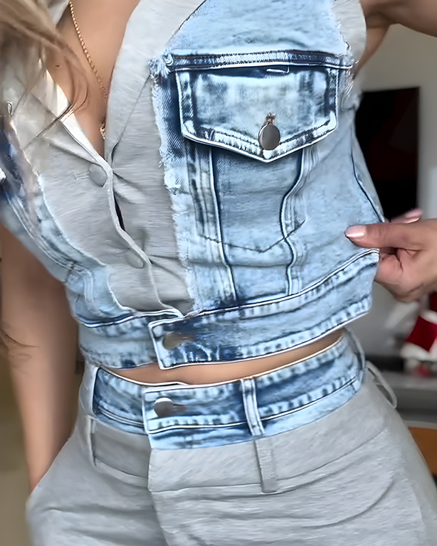 Women’s Fashion Denim Patchwork Sleeveless Top