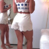 Women’s Sexy Embroidered Suspender Top and Short Rompers Outfit