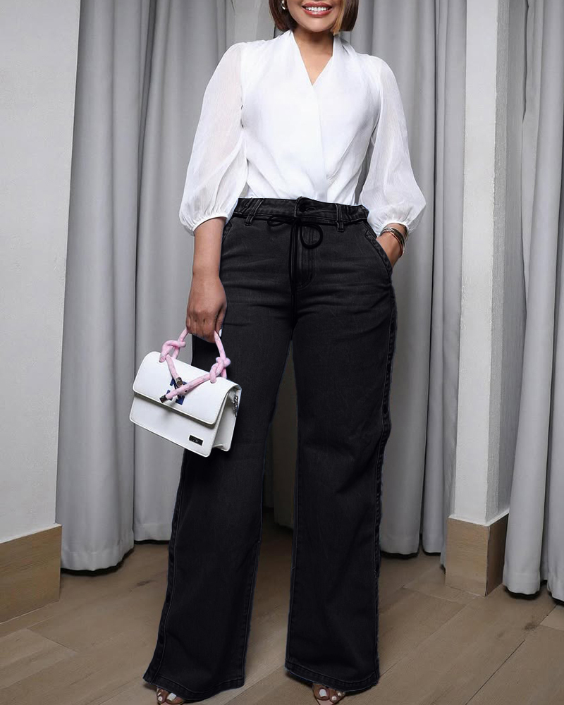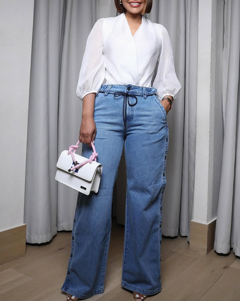 Feature: Straight leg, casual, baggy, high rise, button side. The high-waist design provides a comfortable fit, while the straight-leg style gives you a trendy and chic look. The pocket detail adds a touch of sophistication, making these jeans suitable for both casual and formal occasions