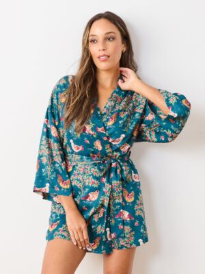 Hen House – Eco Satin Glam Mini Robe – Navy