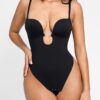 The Bare Essentials™ AirSlim® Backless U Plunge Thong Bodysuit is the ultimate low-back, low-front solution for when you’re getting glam! Designed to sit discreetly beneath strapless and backless outfits, while offering lift and shape at the bust.