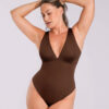 Bare EssentialsTM AirSlim® Deep V-Neck Cross Back Thong Bodysuit