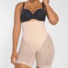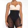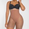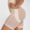 Expertly designed for a streamlined figure, these high-waisted shorts feature a semi-sheer mesh and a French cut double-layer thong to capture attention. Begin your transformation with targeted support for the waist, thighs, and buttocks.