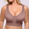 Our Bare Essentials™ AirSlim® Unlined Wireless Back Support Bra is designed for comfort and posture support. This wire-free bra features double-layer cups for a natural shape and criss-cross back bands to improve your posture. The adjustable front closure and wide straps provide a customized fit, while the elastic underbust band offers all-day support. Ideal for daily wear and various occasions.
