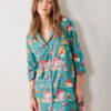 - Fit: Relaxed-fit button-down sleep shirt with 3/4 length sleeves. 36″ length on size small.